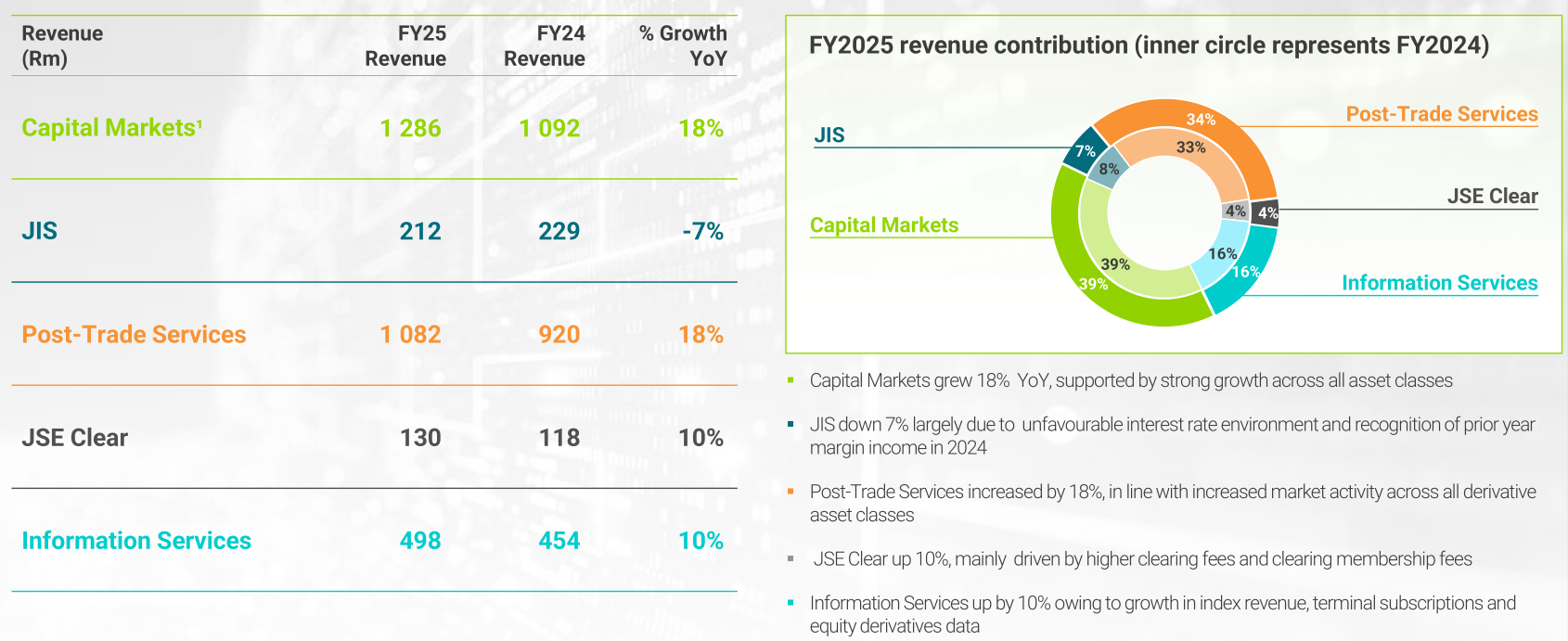 Financial markets and exchanges experience profound change, driven by innovation and technological advances. The JSE responds to these changes by developing new products and services, investing in world-class technology and acquiring companies that deepen our relationship with clients. Our revenue mix is increasingly diversified.